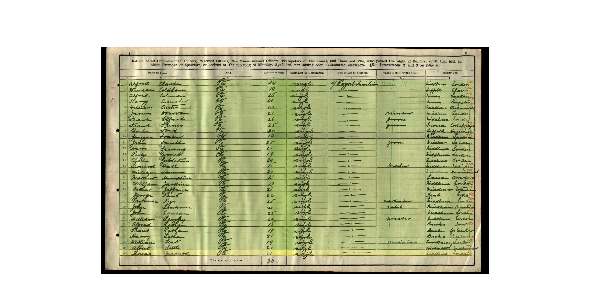 1 | 1 | THOMAS | MADDOX | | 1890 | Middlesex | 21 | | Single | | | | Soldier | | | | |